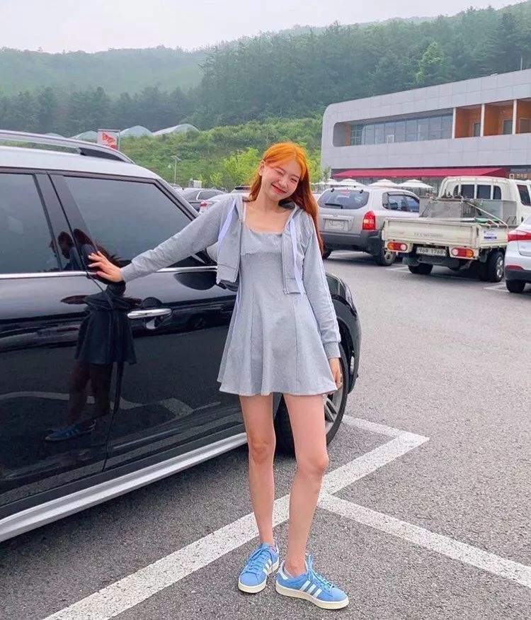 觉得吊带运动裙太过暴露可以pick一件同色系短外套,还能修饰手臂的不足,一举两得。