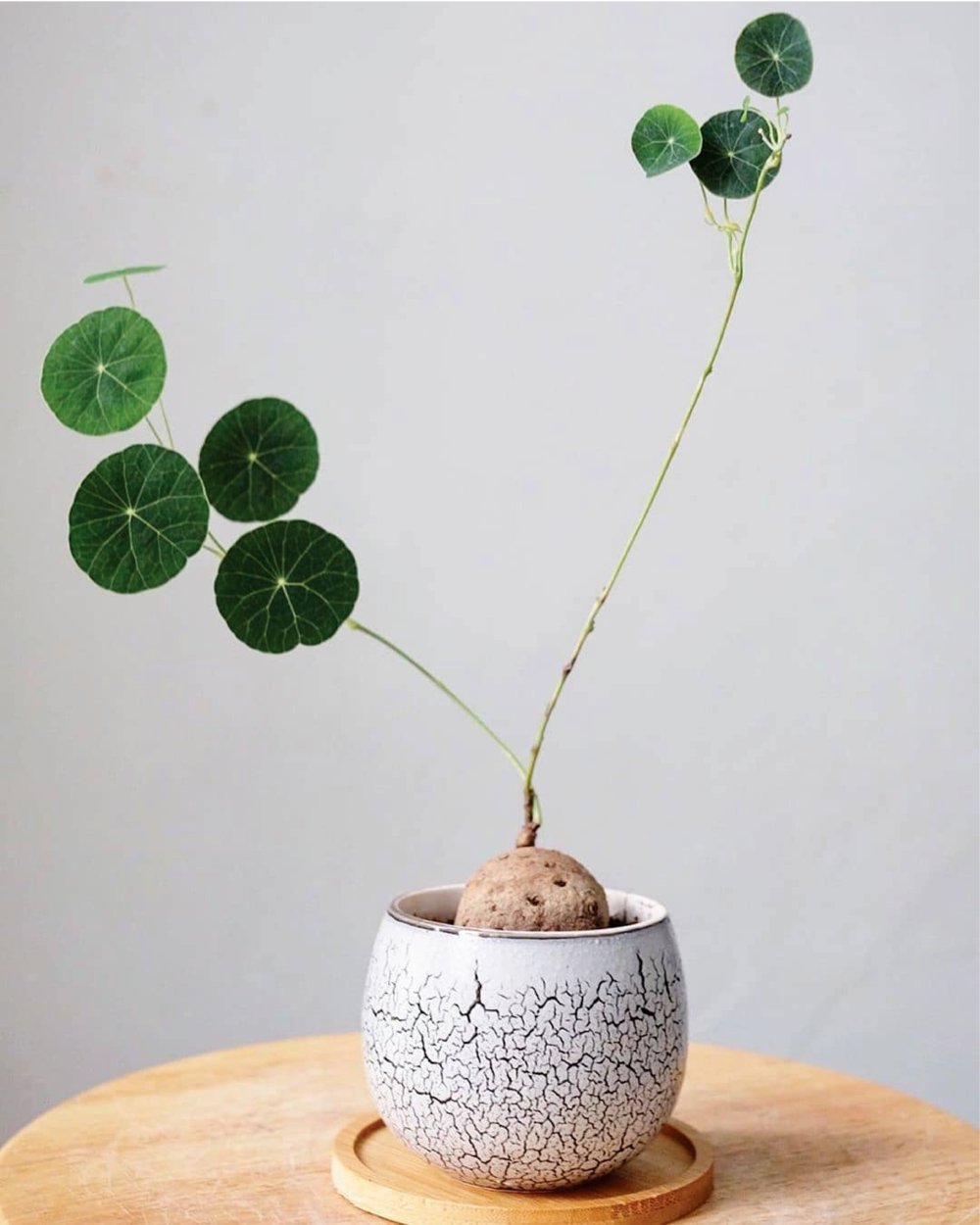 山乌龟的叶子也是非常好看的,叶面翠绿,叶子有圆形、有心形的,观赏性各不相同,其中圆叶山乌龟是最受欢迎的,叶子像一个个小铜钱般,和旱金莲的叶子是极其相似的。