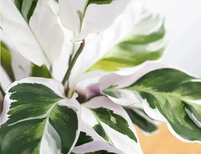 油画竹芋是属于竹芋科肖竹芋属的一种观叶植物,它的叶面上有着白色、碧绿色和翠绿色相间的斑纹,叶子看上去就像是用油墨画出来的,所以会给它取名油画竹芋。