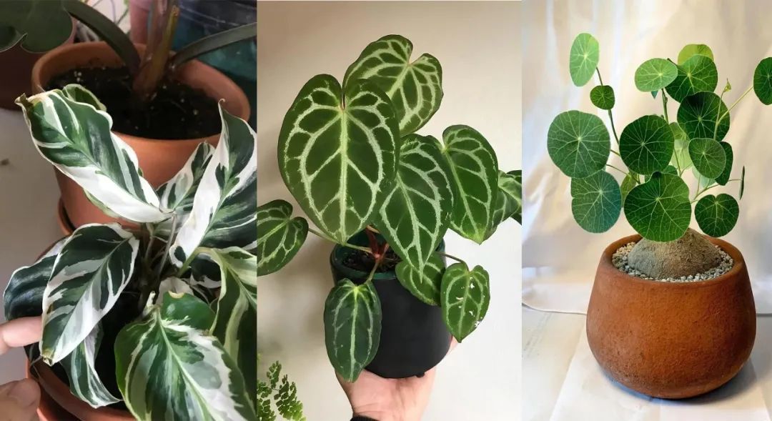 上面分别是油画竹芋、水晶花烛和山乌龟