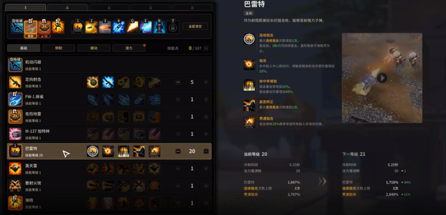 首先定向射击需要点到2级,因为升级到2级后,每次攻击可以恢复蓝量。这套打法技能CD快,对于蓝量的需求量高。二级定向射击还是很有必要的,当然,点到2级就够了。普通攻击并不是我们主要的输出手段。技能巴雷特是直接点满的,满级巴雷特可以储存3发子弹,而冷却也仅仅只有5秒钟。如果忽视定向射击的回蓝的话,基本可以替代普通攻击了。走A才是男人的浪漫,关键伤害还高!
