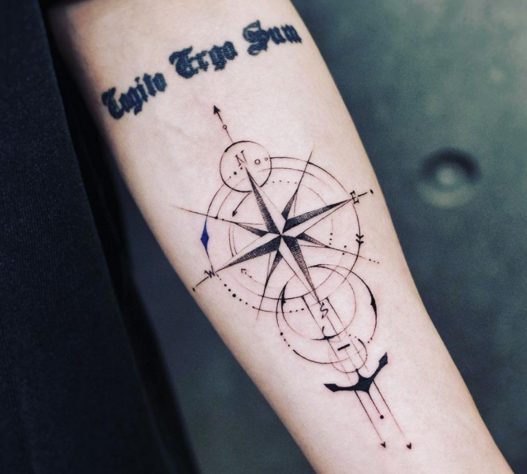 近日,鹿晗在社交平台上晒出一张自己的新纹身照片,手臂上的英文是Cogito Ergo Sum,代表的意思是“我思故我在”,新增图案是一个非常精致的指南针,寓意似乎是安全和好运,的确很适合常年漂泊在外的鹿晗。