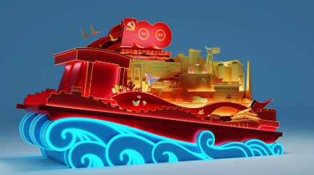 “庆祝中国共产党成立100周年”主题花车——歌颂伟大的中国共产党成立100年以来创造的丰功伟绩;