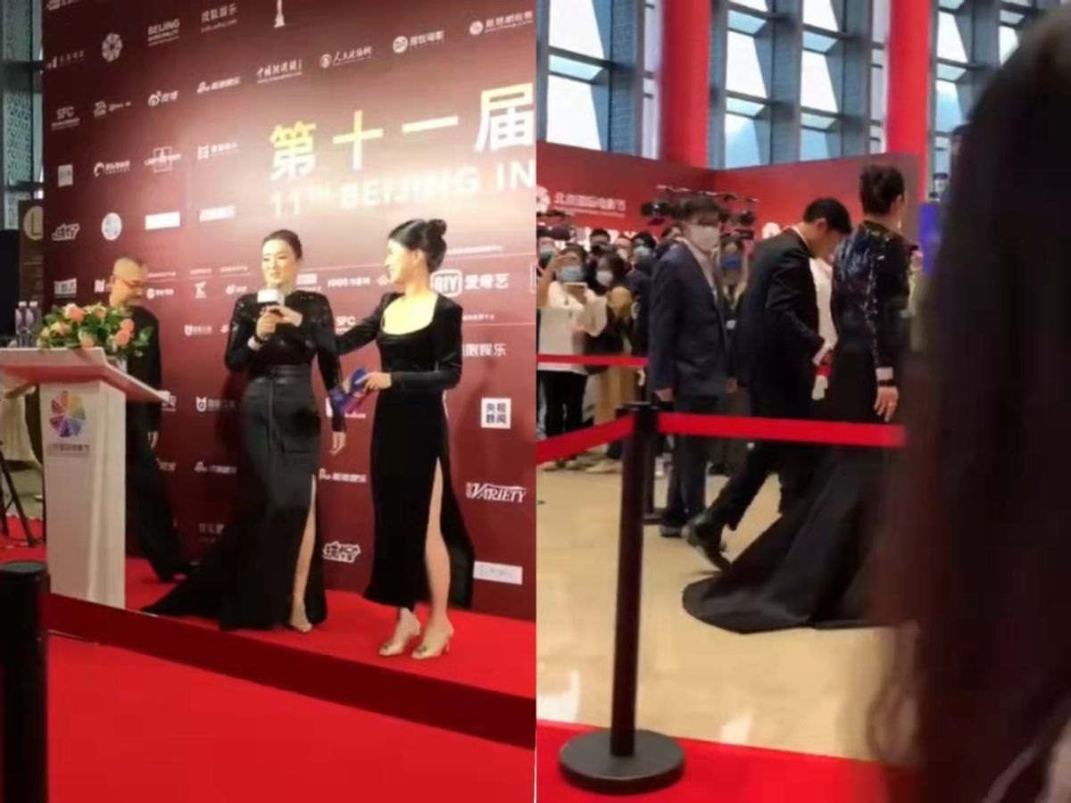 进入内场后,巩俐除了向大家打招呼之外,还不忘感谢现场的工作人员的辛苦付出,亲和力十足。在退场时,一旁的张颂文也很贴心地牵着巩俐的手走路,帮助她保持平衡不会因为鞋跟太高而摔倒,尽显绅士风范。