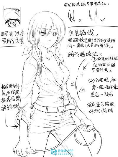 清理线稿的时候需要很长的时间和相当的耐心,描线稿时候的注意事项如图所示。