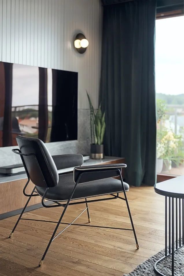 ▲铁艺架+皮艺坐垫靠背的沙发椅,摆在现代舒适的客厅里,也带来一种独特高级的品质感。