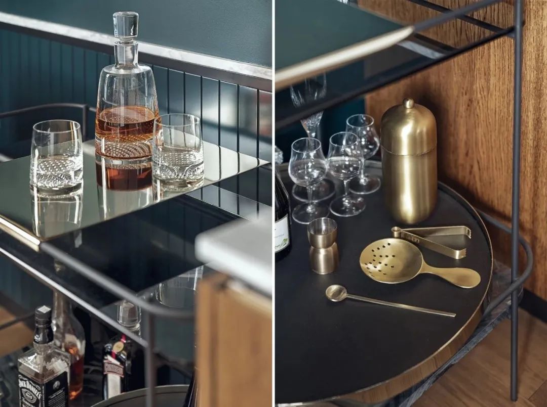 ▲现代精致的玻璃器皿与酒杯酒瓶,细节之处满是高级与档次气息。