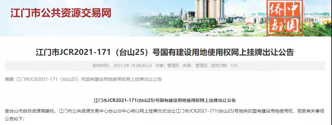 资料来源:江门市自然资源局;项目信息仅供参考,以实际公布为准。