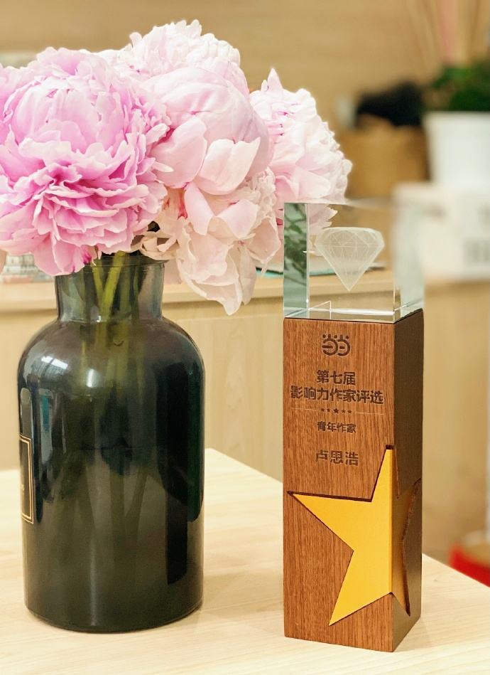 2021年5月,当当网评选卢思浩为第七届影响力作家“青年作家”。/微博@卢思浩工作室