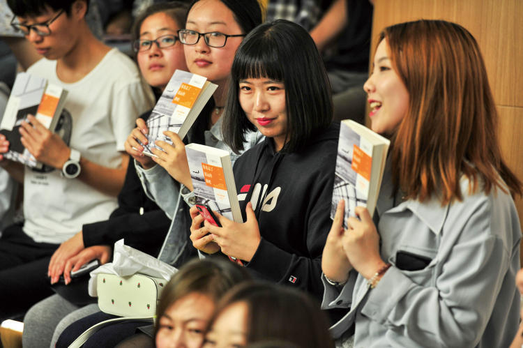 2017年9月23日,读者手捧卢思浩新书参加见面会。/视觉中国