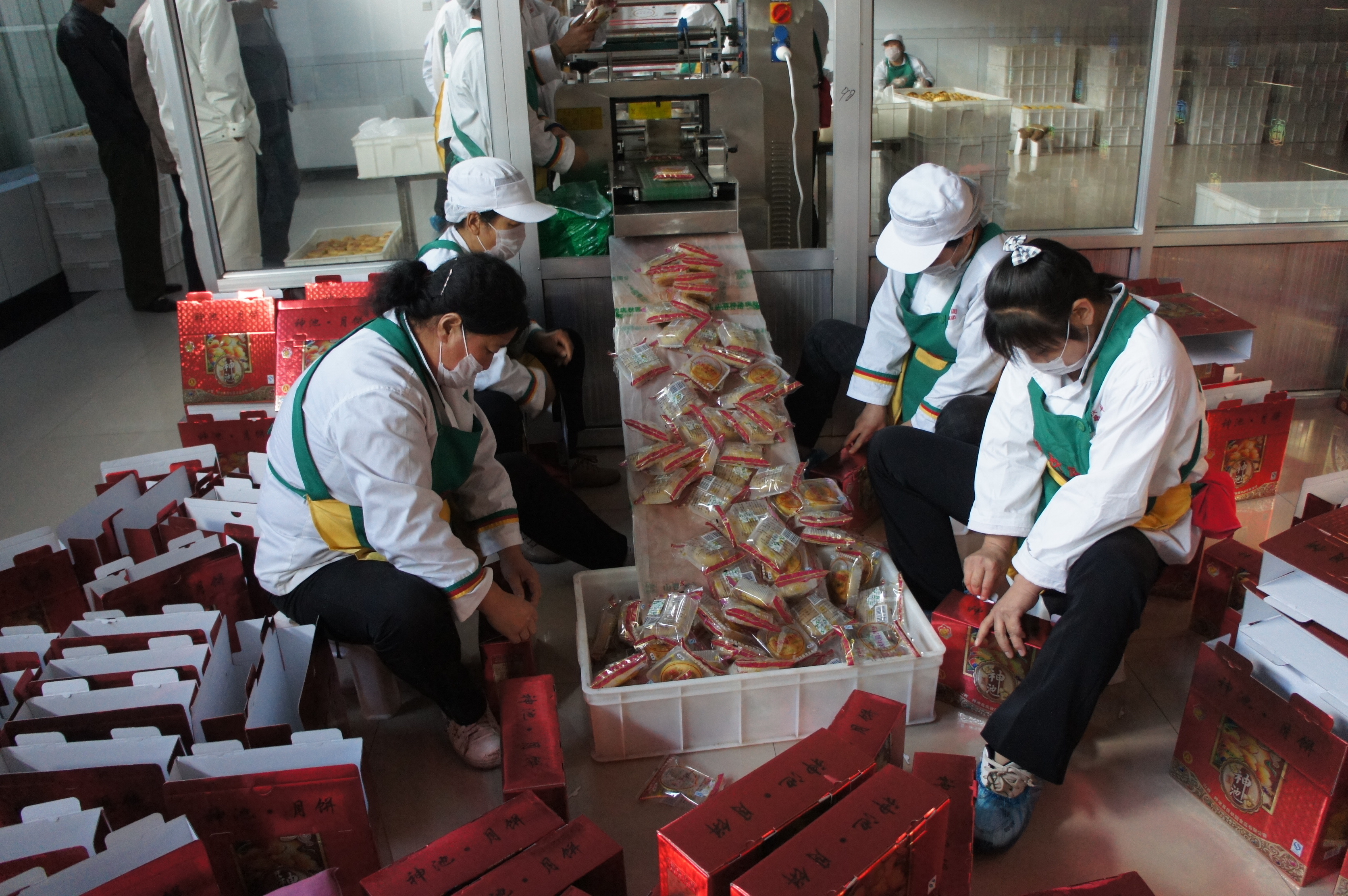 神池县一家月饼生产企业的员工正在包装月饼。(受访单位供图)