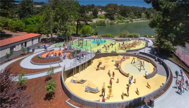 一般来说,主题公园内儿童游乐区场地规模跟主题公园整体的面积、位置、人流量等因素息息相关。主题公园中的儿童人数比例一般是占是总游人数量高达百分三十左右,在整体的儿童游乐区场地规模设计中,要让孩子们既对场地内部自然环境有一个总体感知,又能够与环境外部空间有充分的交互,忽略公园位置的因素,在综合类公园绿地中指标,儿童游乐区场地规模建议用地50㎡/人。并且要有相对的独立性,有适当的围合,便于成人看护能保证儿童的安全。