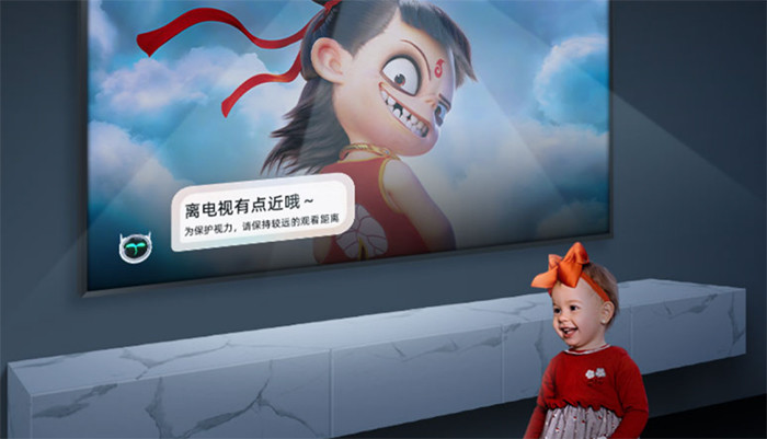 摄像头的第三个妙用,也是笔者认为最贴心、最能体现科技人文关怀的功能,便是当贝Z1 Pro的专属儿童模式。一方面,当贝Z1 Pro中有海量的少儿动画资源、丰富的教育资源等,安全儿童模式使家长能够完全控制内容、时间、黑名单,保护小朋友的心理健康;另一方面,都说眼睛是心灵的窗口,但如今到处都充斥着电子屏幕,对眼睛的损伤巨大。特别是身体还处于发育期的少年儿童,电子荧幕对他们的危害更为严重,保护未成年人视力刻不容缓。因此当贝Z1 Pro利用2K超清摄像头,结合AI智能算法,在小朋友距离电视太近时就会发出“警告”,帮助小朋友养成良好的用眼习惯。