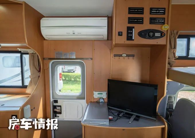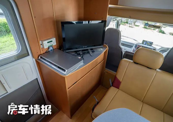 在乘客门上方为全车的电视柜,上方提供了一台22英寸的液晶电视机,也可以提供基本的娱乐需求。