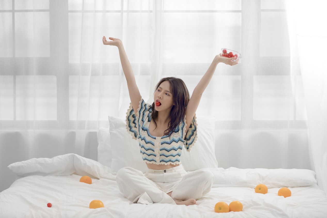 近日新人刘亦芊曝光了一组居家写真,只见刘亦芊以简约穿搭风格出境,身穿蓝白相间的波浪纹短袖上衣,搭配白色裤子,姿态随意大方,抱着橙子或零食,气氛舒适惬意,肆意享受暖暖的午后时光,清新笑容尽显花样少女,满满的治愈感。
