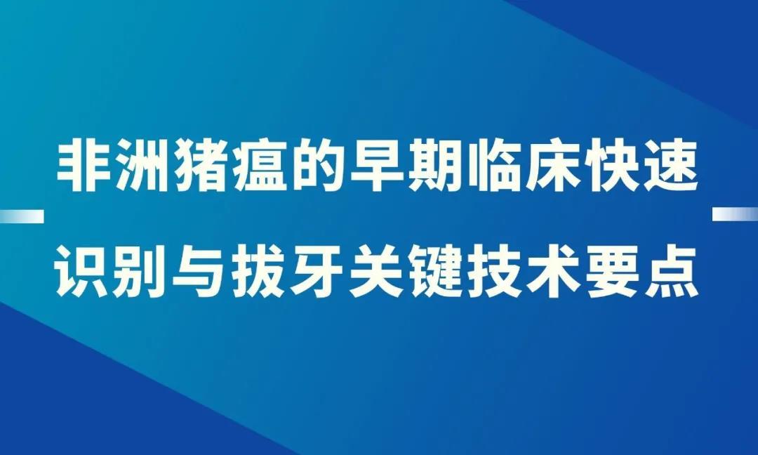 非洲猪瘟感染发病后表现出很多临床症状,如呕吐、腹泻、流产、针眼出血不止,紫癜,青斑、血便、鼻流泡沫等,这些症状有助于识别,但不具有特征性。且对拔牙来说,等出现这些症状再去处理,损失较大。