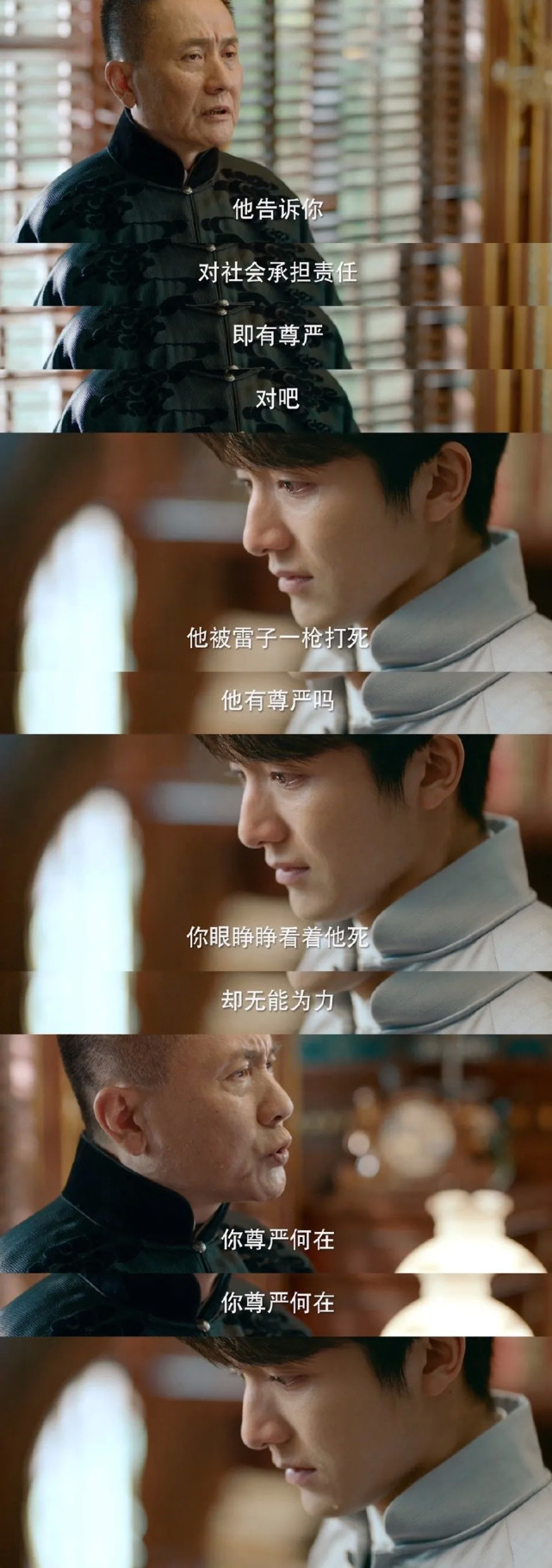 剧中,张新成饰演的程亦治在看见尊敬的陆教授在面前死去,却发现这场死亡是验证尊严理论的一场闹剧时,张新成的震惊、悲惶、愤怒都转化成被欺骗和背叛而聚起的泪水,层层递进,直直牵引观众感受他的情绪,不能自拔。