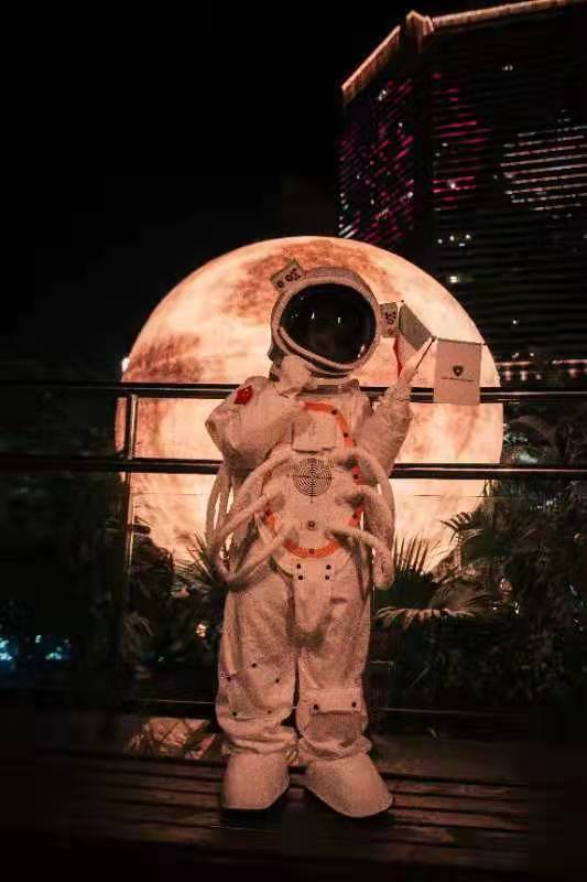 天上有月亮,地下也有月球全息投影。通过光影时空虫洞——穿月隧道,一秒登陆月球。这是长沙唯一可观赏到两个月亮的地方,感受热带丛林里,月亮的光影变幻。现场几乎成为长沙新的打卡地标,人们争相合影留念,感叹过了一次充满科技感的中秋节。迷幻的空间,搭配野肆月球中秋特调,瞬间让人体会到古人“海上升明月”的诗情画意。还有点缀在俊男美女身上的荧光DIY纹身,和野肆月球中秋特调酒,激发了这个夜间最有神秘感的荷尔蒙。“野肆月球”也创始人李先杰先生总结说,他们把这样一个既浪漫,又充满想象力的创意引进来长沙,平躺在这样的环境中,遥望天上明月,是敢为人先的长沙人对中秋赏月的一种新式表达。