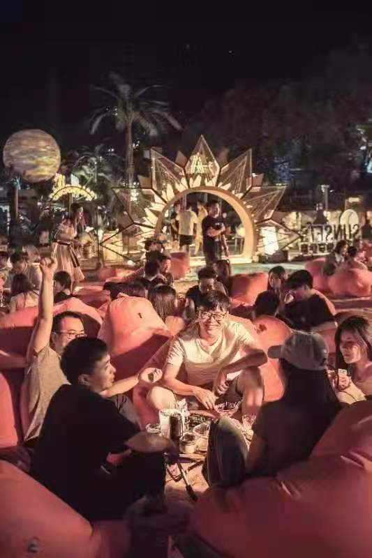 都说长沙人最会玩,这次野肆月球yesocial中秋主题活动特别设置了平躺懒人沙发区,这里有空运至北海银滩的十吨沙子让人感受最原汁原味的热带气息,还有热情桑巴舞者不定时出现燃动夏夜。据活动执行官玎玎介绍,套用一句很流行的话“心中有海,哪里都是马尔代夫”,国际上有一种的活动,在这个活动中“海”和“沙滩”都可以任意想象。