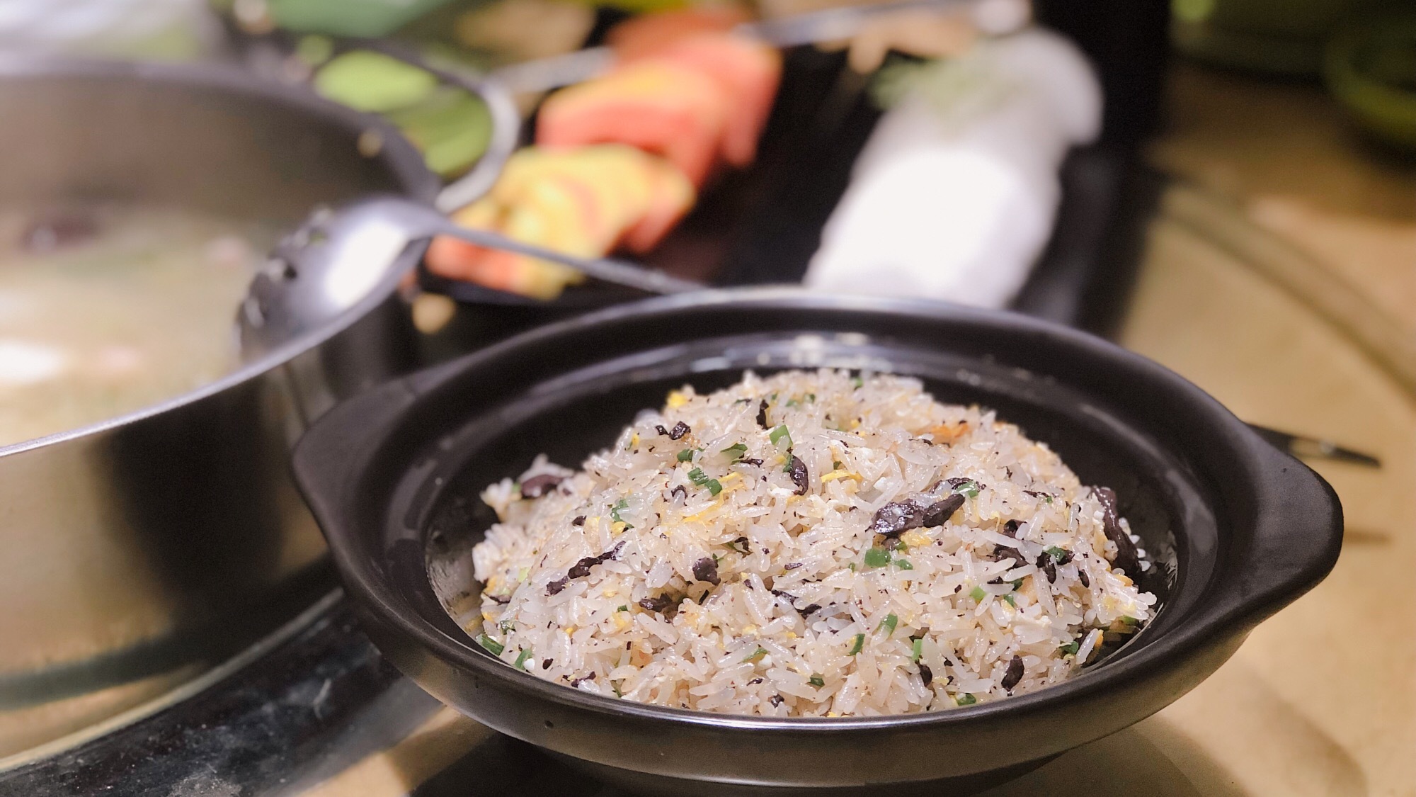 羊血炒饭是他们家的特色,光听名字就让很多人都望而却步,吃起来是很香的哦。上桌就冒出一股浓郁的香气,根本闻不出来是羊血的味道。颗粒饱满的米饭与羊血完美融合,吃起来热乎乎的,很好吃,没有膻味。