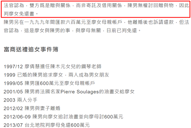 法官取信了廖倩慧,判决不必返还。