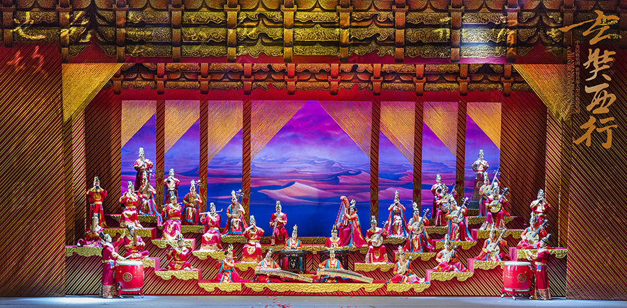民族器乐剧《玄奘西行》由中央民族乐团出品,青年作曲家姜莹担任作曲、编剧、总导演,是世界首部大型民族器乐剧,以丝绸之路文化交流使者玄奘西行取经的历史故事为题材,融多民族乐器演奏和戏剧表演为一体,集中展示敦煌莫高窟壁画复原古乐器及古丝绸之路各民族传统音乐。该剧由《大乘天》《佛门》《一念》等15个曲目组成,共演奏南箫、古筝、胡琴、箜篌、艾捷克等70多种民族乐器,全景式展现丝绸之路沿线各民族音乐在融合中兼收并蓄的多元文化特质。演出结束后,中央民族乐团将向甘肃演艺集团歌舞剧院赠送价值360万元的乐谱、舞美、道具和服装,并指导甘肃省实现该剧的常态化演出,为甘肃再添一张靓丽的文艺名片。