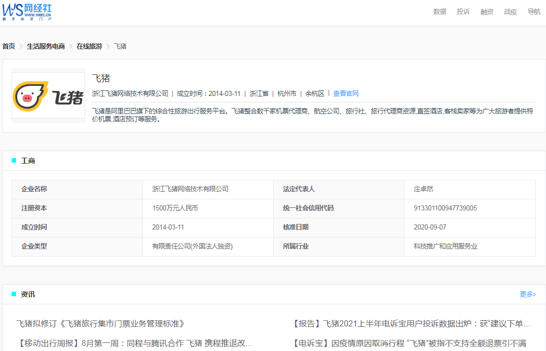 从网经社企业库(COP.100EC.CN)了解,飞猪隶属于浙江飞猪网络技术有限公司,该公司成立于2014年3月11日,法定代表人是庄卓然。该平台是阿里巴巴旗下的综合性旅游出行服务平台,整合数千家机票代理商、航空公司、旅行社、旅行代理商资源,直签酒店,客栈卖家等为广大旅游者提供特价机票,酒店预订等服务。