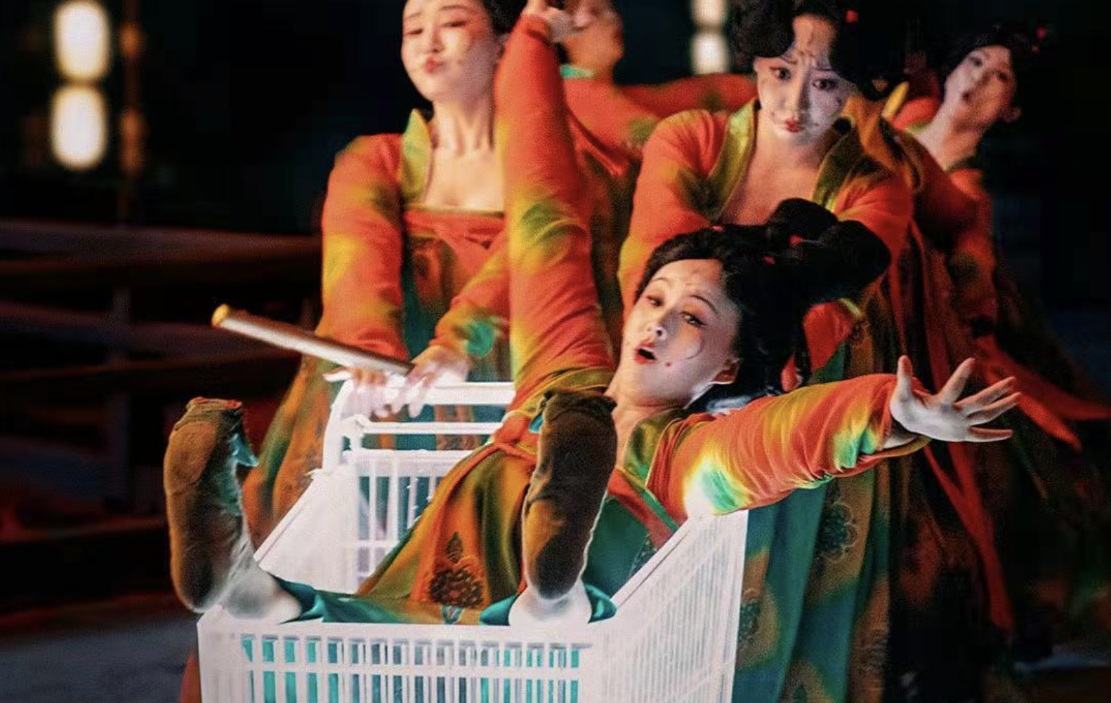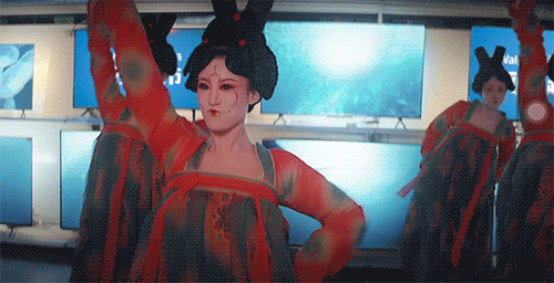 而观众们,正如乐师们舞动背景上写的“网上超市”一样,也跟随镜头,在网络上与宫女乐师们逛了一次沃尔玛。