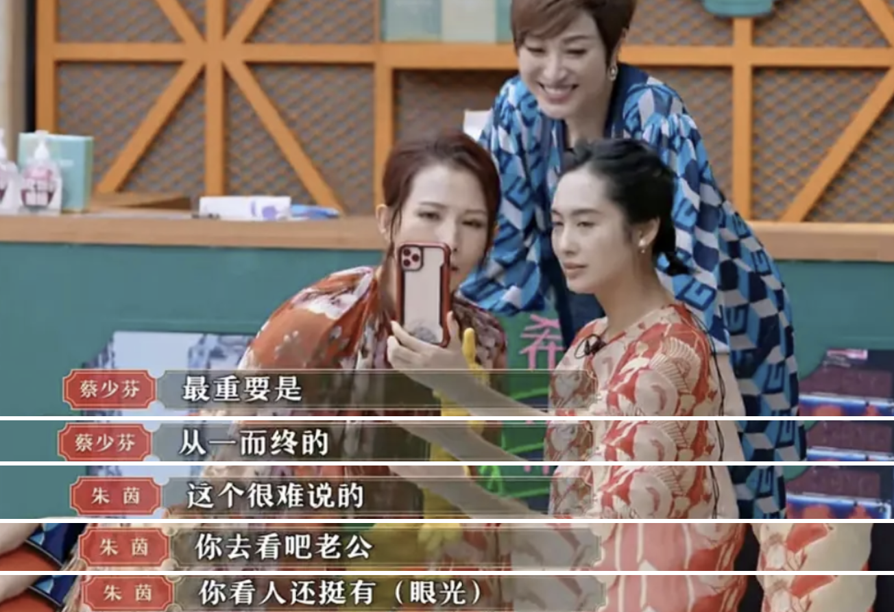 陈法蓉说完她的要求是“孝顺,喜欢狗狗”后,蔡少芬补充了一句:“最重要的是,从一而终。”对这句话,朱茵嘴上说着很难的,但转头就让黄贯中去看吧:“你看人还挺有(眼光)的。”就,真的是亲媳妇啊!