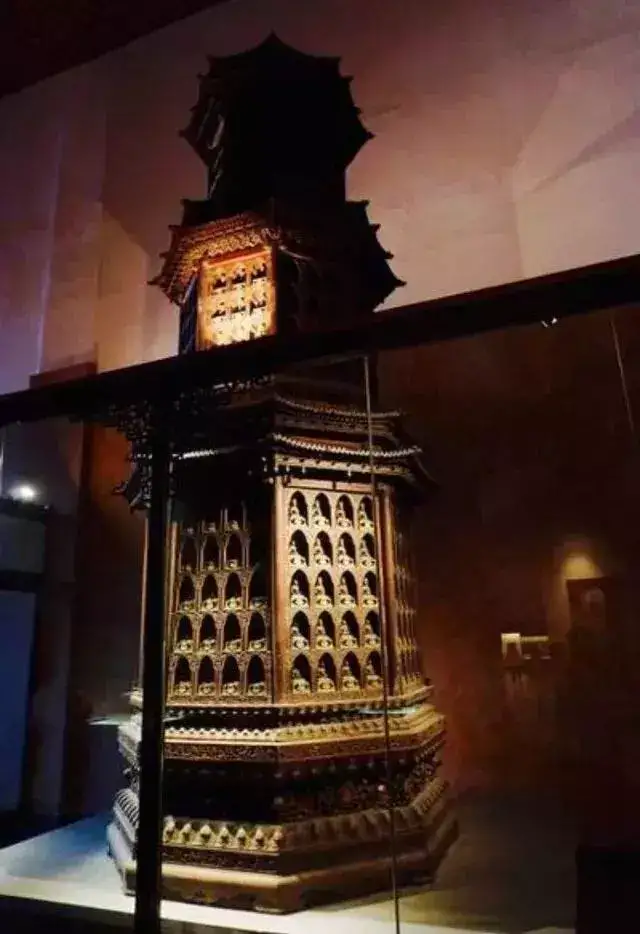 清代金丝楠木塔是1973年从故宫调拨至洛阳的2000多件文物中的一件,此塔原藏北京故宫慈宁宫大佛堂。我国民间素有“纵有珠宝一箱,不如乌木一方”的说法。在明代,凡宫殿及重要建筑,其栋梁必用楠木,到了清代楠木已成为皇室专用之材。这座三层金丝楠木塔,周身深棕色,高约6米,重约4吨,八面三级重檐,周身有304个佛龛,每个龛中供奉一尊鎏金菩萨。整座佛塔雕刻手法多样,全部采用榫卯工艺,不用1颗铁钉,堪称佛教艺术中的珍品。