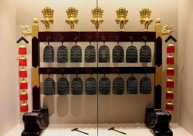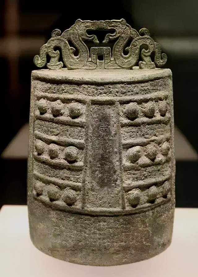 北宋“大晟夷则”铜编钟,高27.5厘米,最大口径18厘米,重约6千克,甬部为双夔形,钲部有36枚,舞和篆部饰蟠虺纹,正面中部阴刻篆书“大晟”二字,背面刻“夷则”,“大晟”是北宋王朝的宫廷乐府名,“夷则”是古代音律之一。器形古朴典雅,纹饰优美,篆刻工整。据载,大晟编钟是于宋徽宗赵佶崇宁三至四年(1104-1105)在京师所铸,该钟以睢阳(商丘)出土的春秋时期的宋公成钟为式样铸成,计12编,每编28只(正声12、中声12、清声4),总共336件。