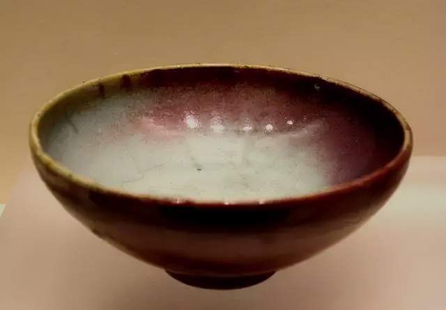 宋钧窑玫瑰紫窑变瓷碗,出土于禹州扒村钧窑遗址,胎质纯厚紧密,外壁为玫瑰紫色,碗口处有一大片玫瑰紫斑,玫瑰紫与天青色错综掩映,互相衬托,仿佛天边的晚霞熠熠生辉。“钧瓷挂红,价值连城”,宋代钧瓷窑变以紫色、红色最为难得。钧瓷以釉色取胜,特别是窑变釉,釉色千变万化,钧瓷无双,窑变无对。钧窑是宋代五大名窑之一,历来被人们称为“国之瑰宝”,“纵有家产万贯,不如钧瓷一片”。