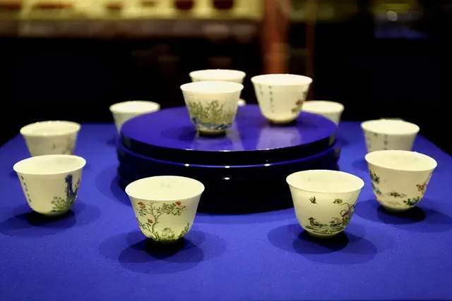 清康熙五彩十二月花卉杯,是景德镇御窑厂烧造的一整套压手酒杯,共有12只。这12只花卉杯的大小、形制相同,口径为6.7厘米,底径2.8厘米,高4.9厘米,胎质乳白,器薄如纸、为脱胎瓷,每只杯子仅重20多克,圈足内有大清康熙年制青花6字楷书款。这12只花卉杯,其外壁分别用一年12个月中不同的花卉来装饰,并配以相应的诗句,每个诗后面还有一个小方印,就是一个赏玩的“赏”字,把诗书画印有机的结合在一起,就像