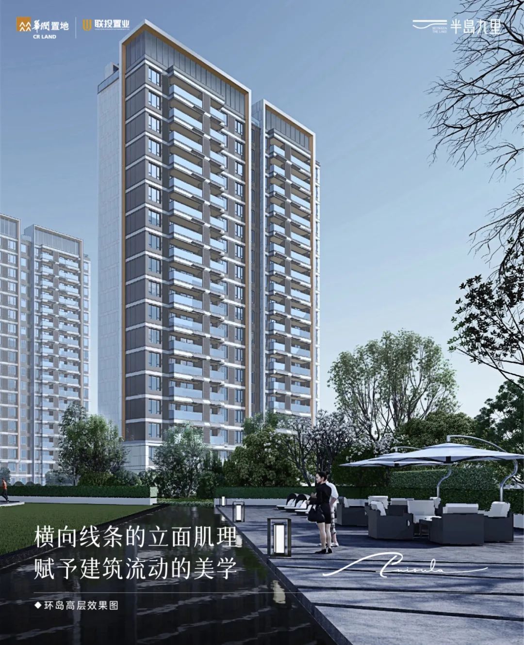 从华润半岛九里已公布的规划来看,它是“ 环岛高层+ 长院洋楼+岛岸叠墅(含三叠拼、临湖双叠拼) ”的阶梯组合。