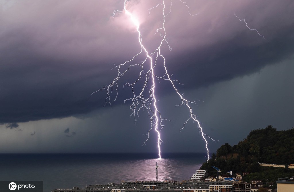 场面震撼!闪电“击中”俄罗斯索契黑海海面