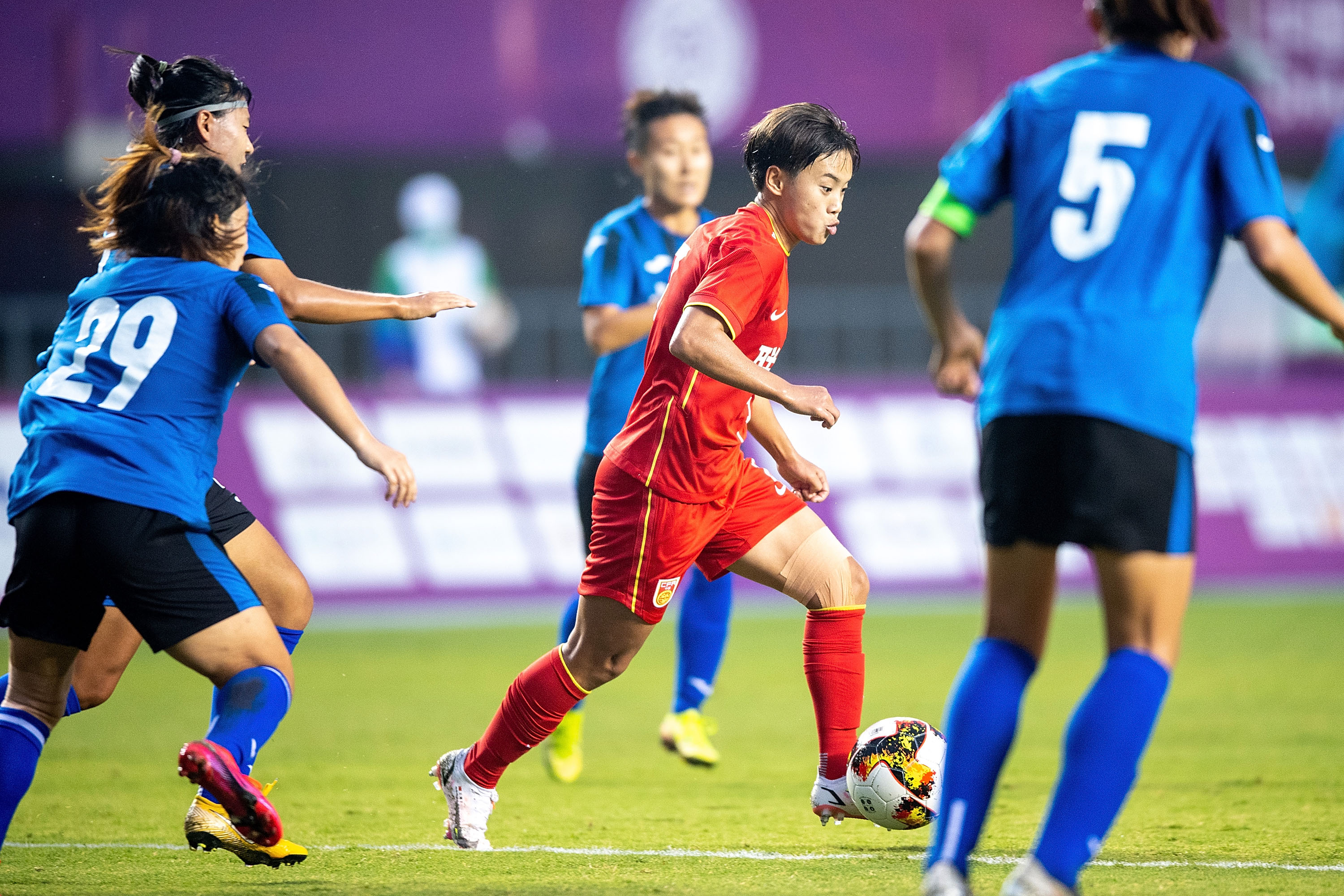 9月23日,联合队球员王霜(右二)在比赛中带球突破。新华社记者刘金海摄