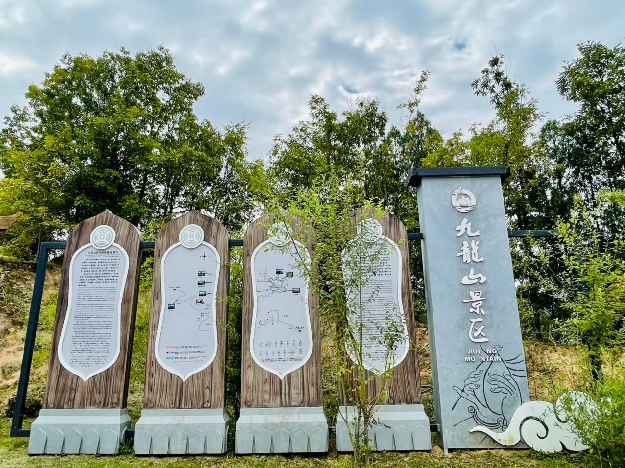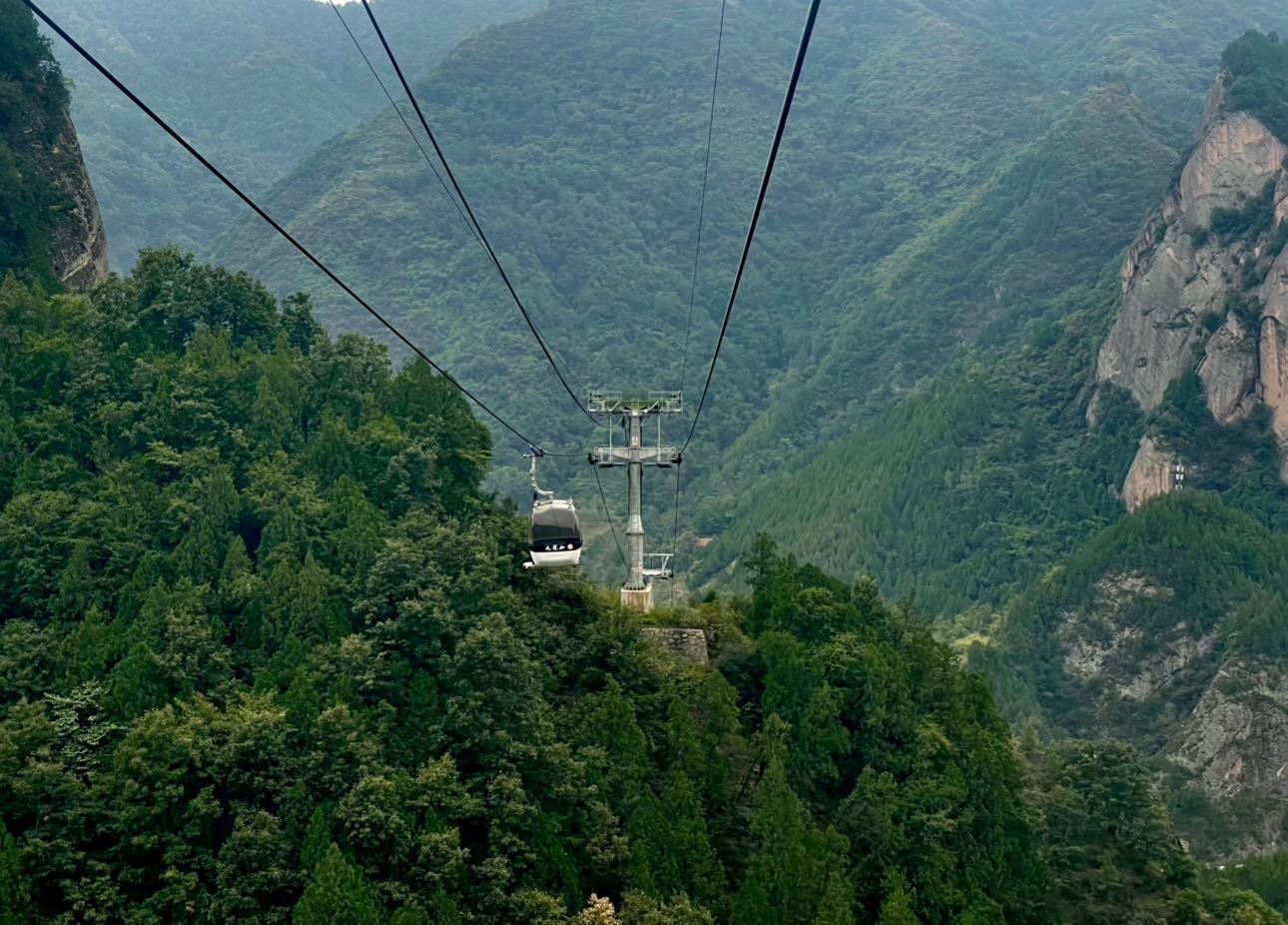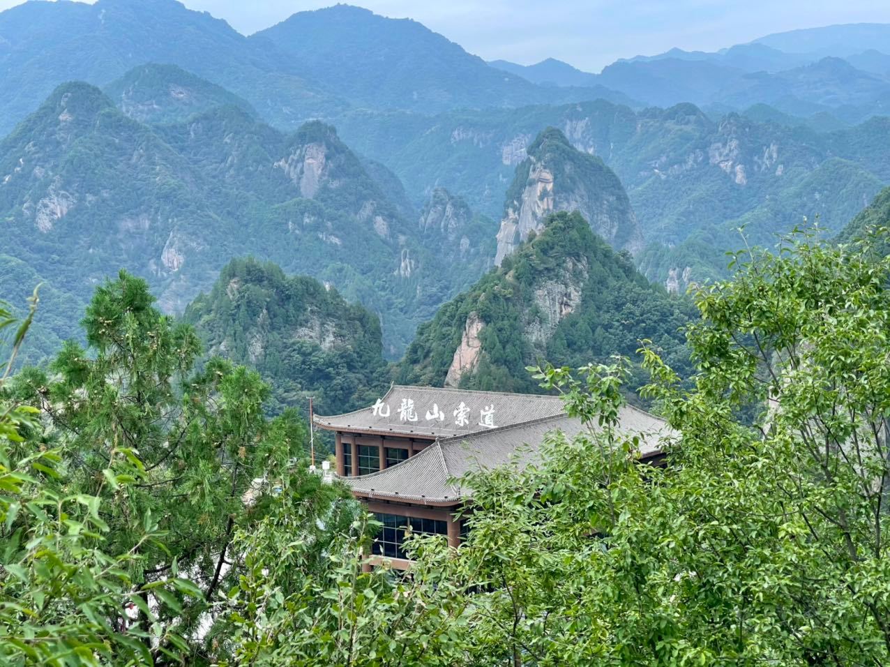 九龙山群山翠绿,峡谷纵横,奇峰怪石嶙峋,河水从峡谷中缓缓而流,山脉绵延起伏美极了。