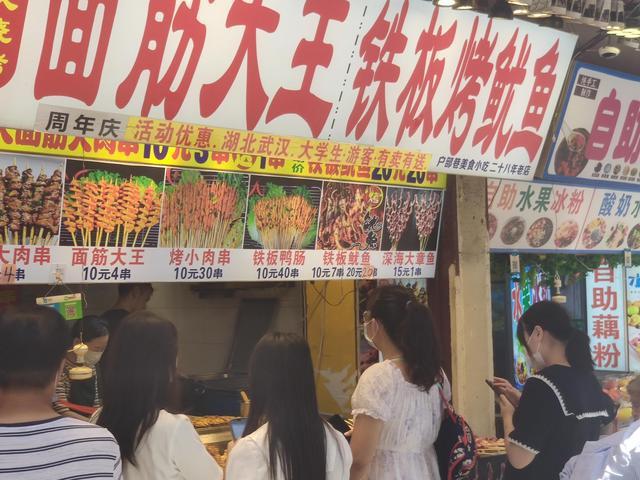 那些美食街统一的小吃:铁板鱿鱼,铁板鸭肠,红烧猪脚,藕粉,烤面筋等充斥着这条武汉特色美食街,武汉的特色早就没有了,只剩下这条专坑外地游客的美食街。