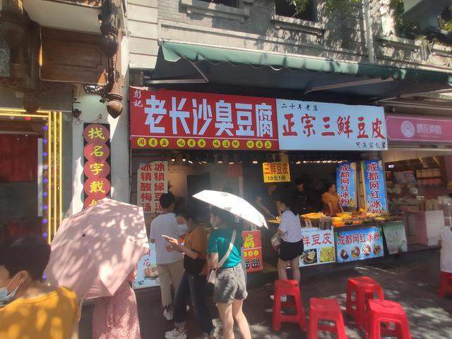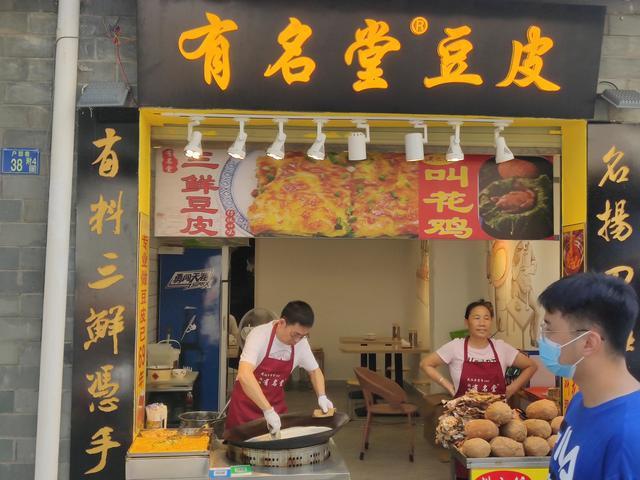 逛了一圈后发现,户部巷如今只卖五种小吃,豆皮,热干面,烤串,水果捞,臭豆腐。