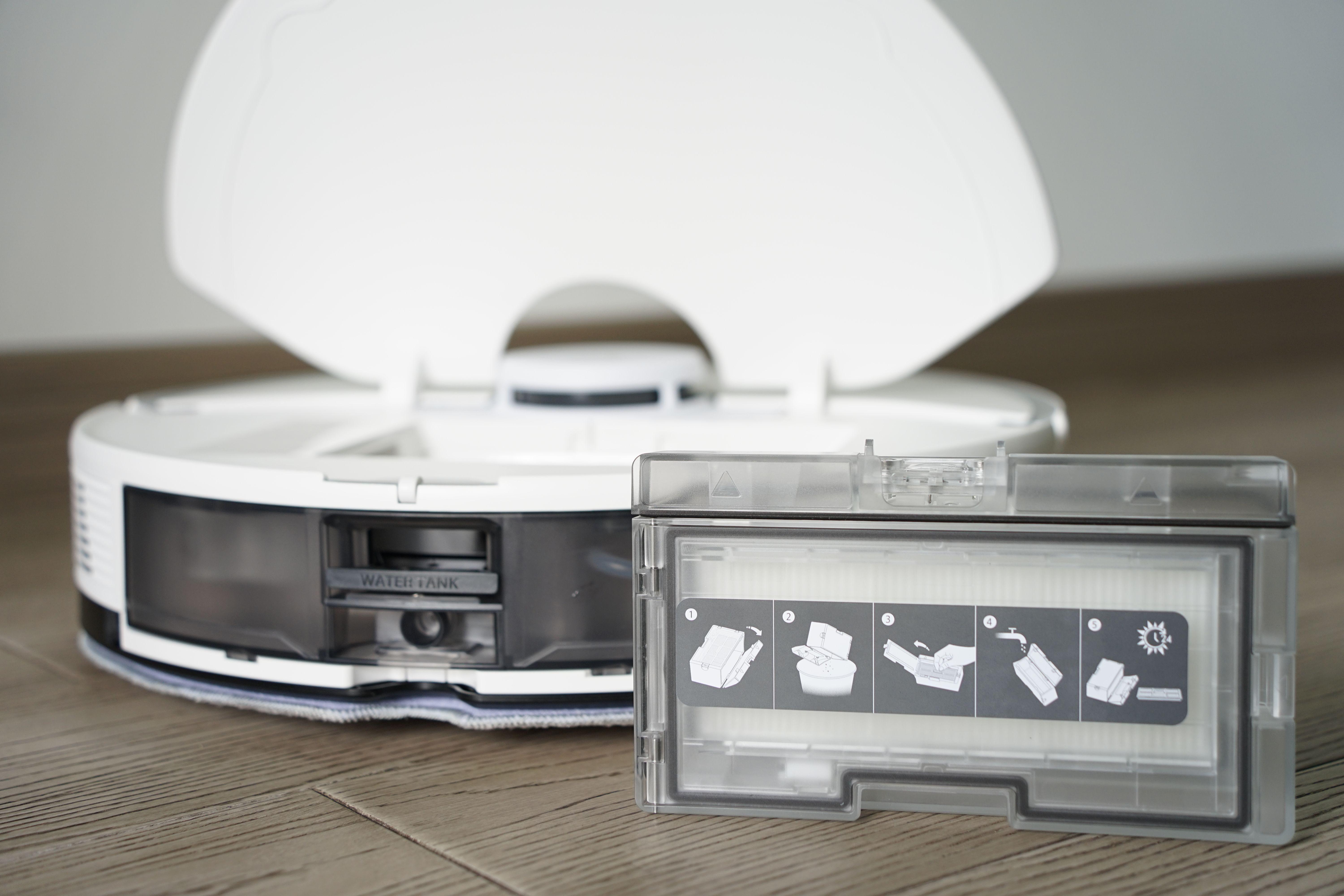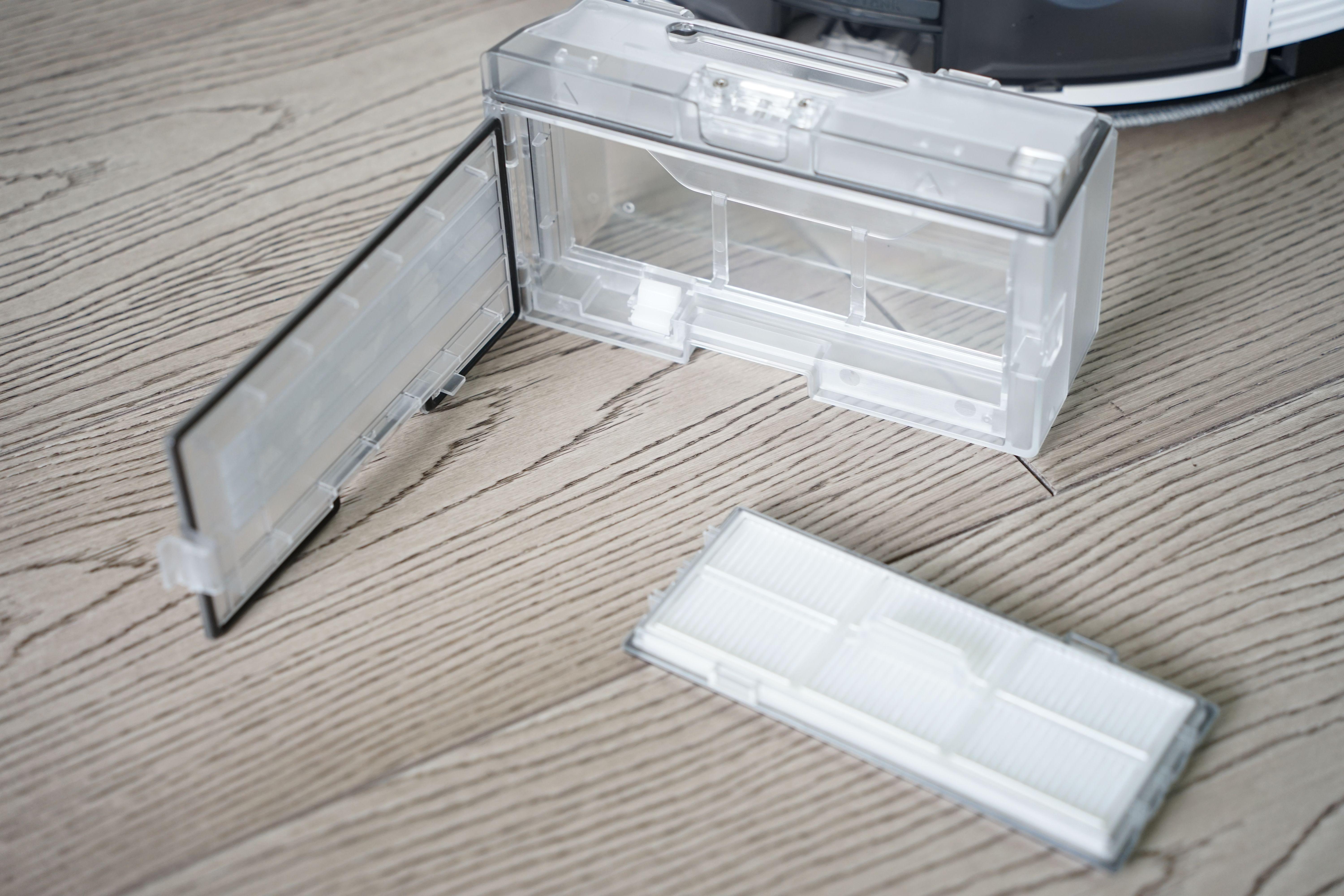 石头G10的尘盒可以非常方便地取出,同时尘盒本体也可以快速进行拆解,方便我们及时清理灰尘或更换滤网。