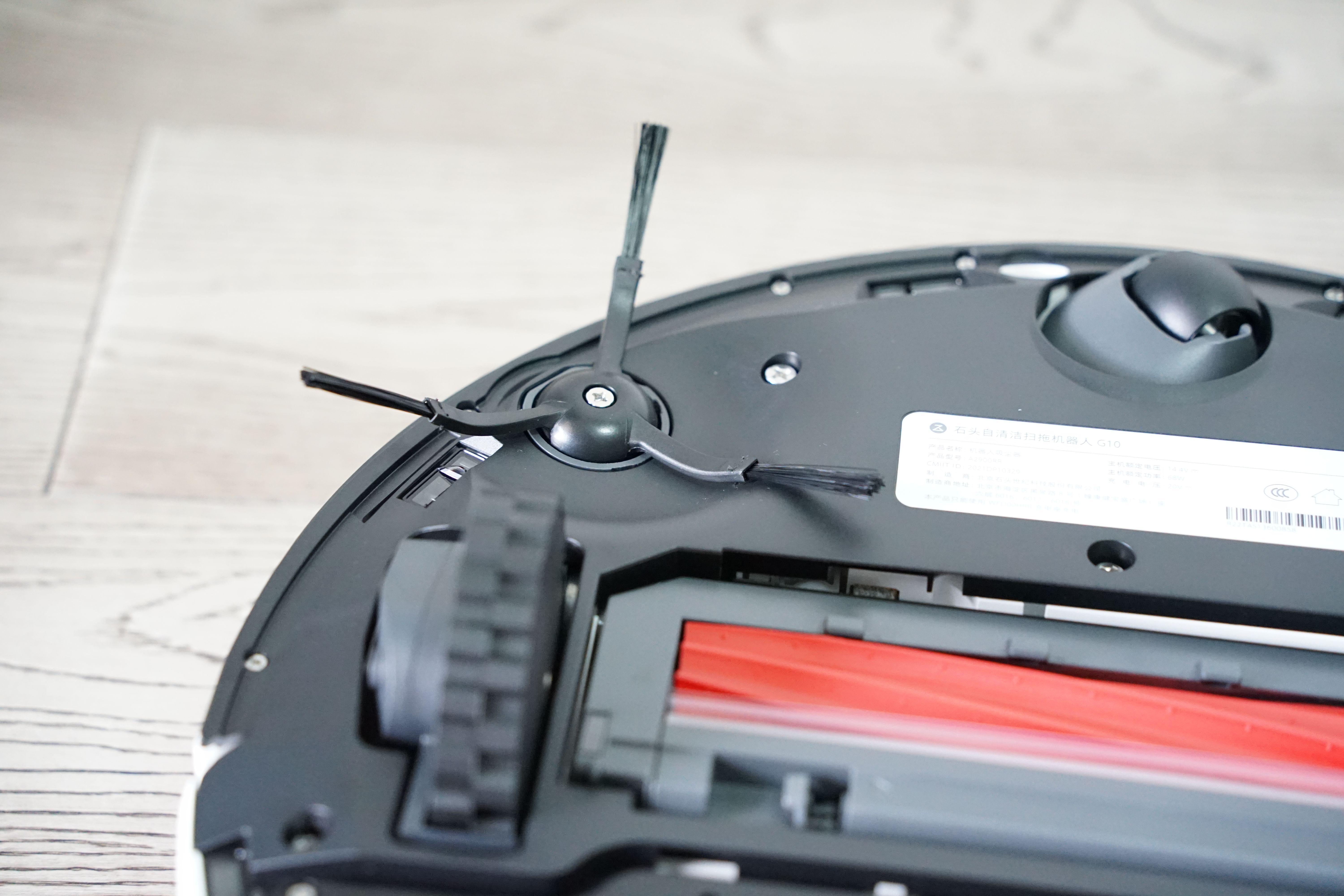 这里要特别说一下这次石头G10采用的柔性胶刷,大部分毛发会被吸入尘盒之中,用来扫地时几乎不会被毛发缠住,这一点体验还是很不错的。