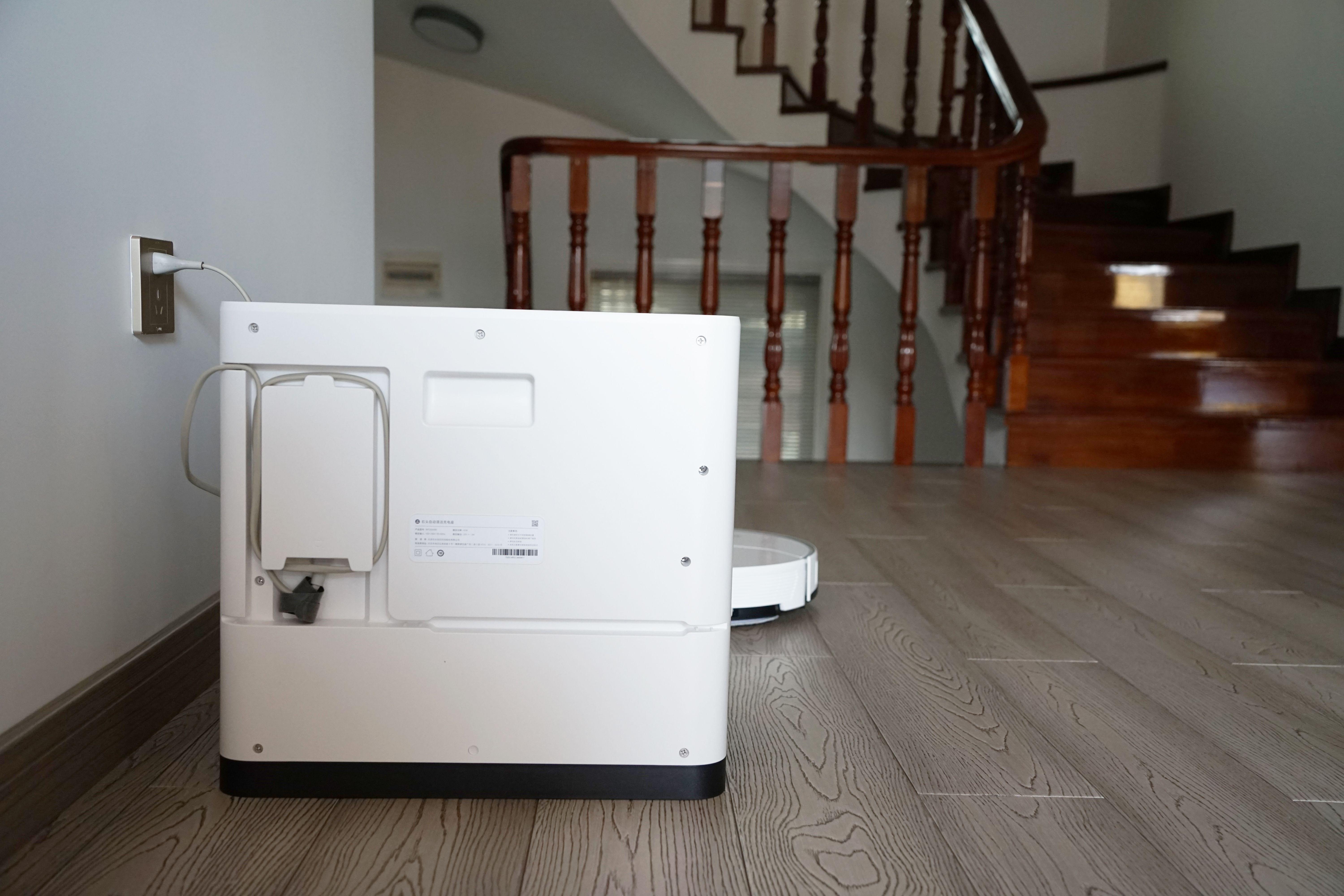 看了上面的测试,相信大家对石头G10的清扫能力有了一定了解,但扫得彻底、拖得干净只是石头G10的亮点之一,正如我们前面提到的,石头G10还支持自动清洗拖布,而这其中自清洁充电桩基座发挥了至关重要的作用。