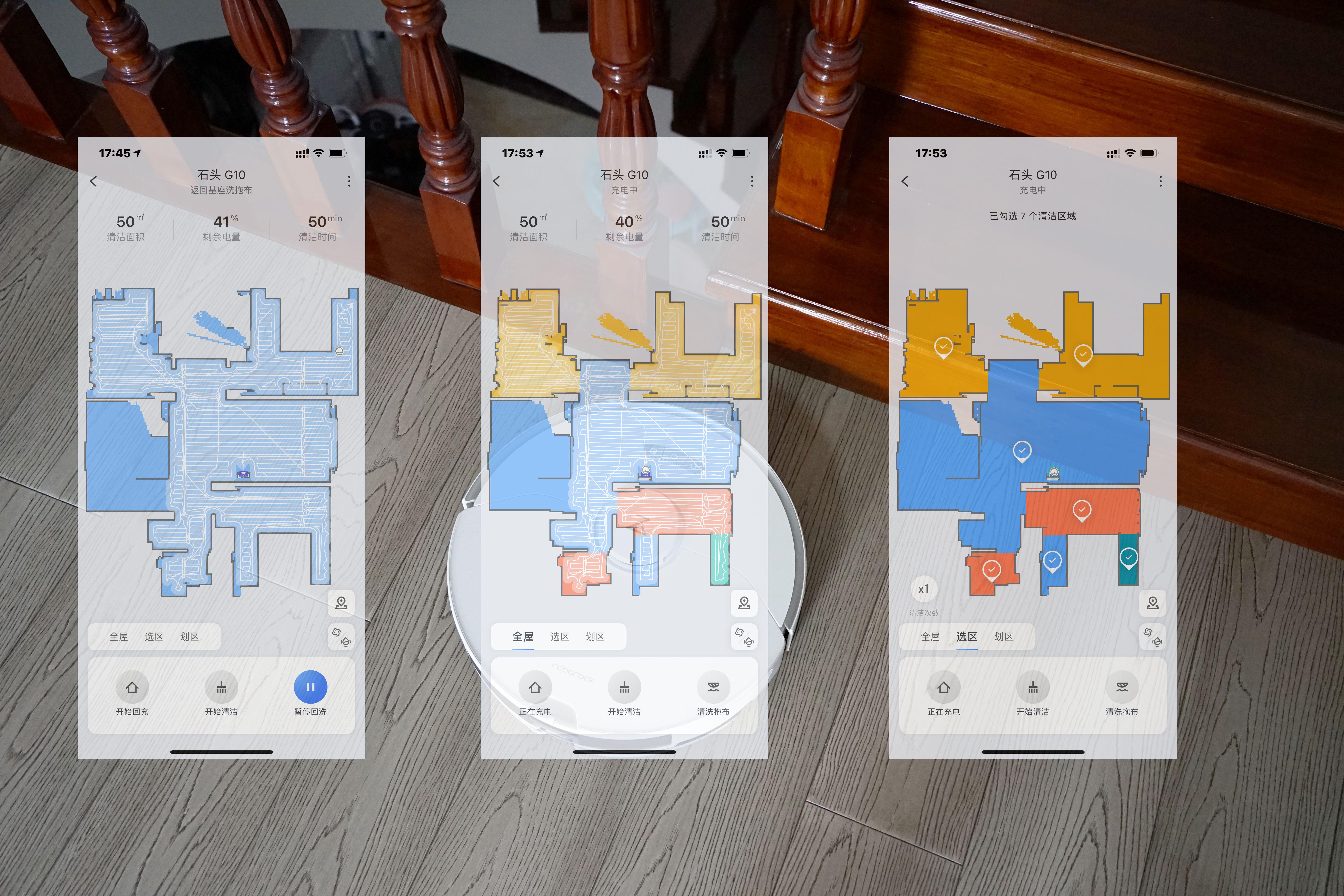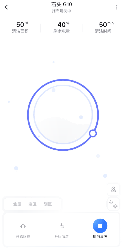 与以往的石头科技高端扫拖机器人一样,伴随工作的同时,石头G10还支持扫地路线在 APP 地图上的实时显示,通过LDS 房间分区算法,实现更加准确的分区,以方便我们实现选区/划区井字形重点清洁、选区定时清扫等操作。