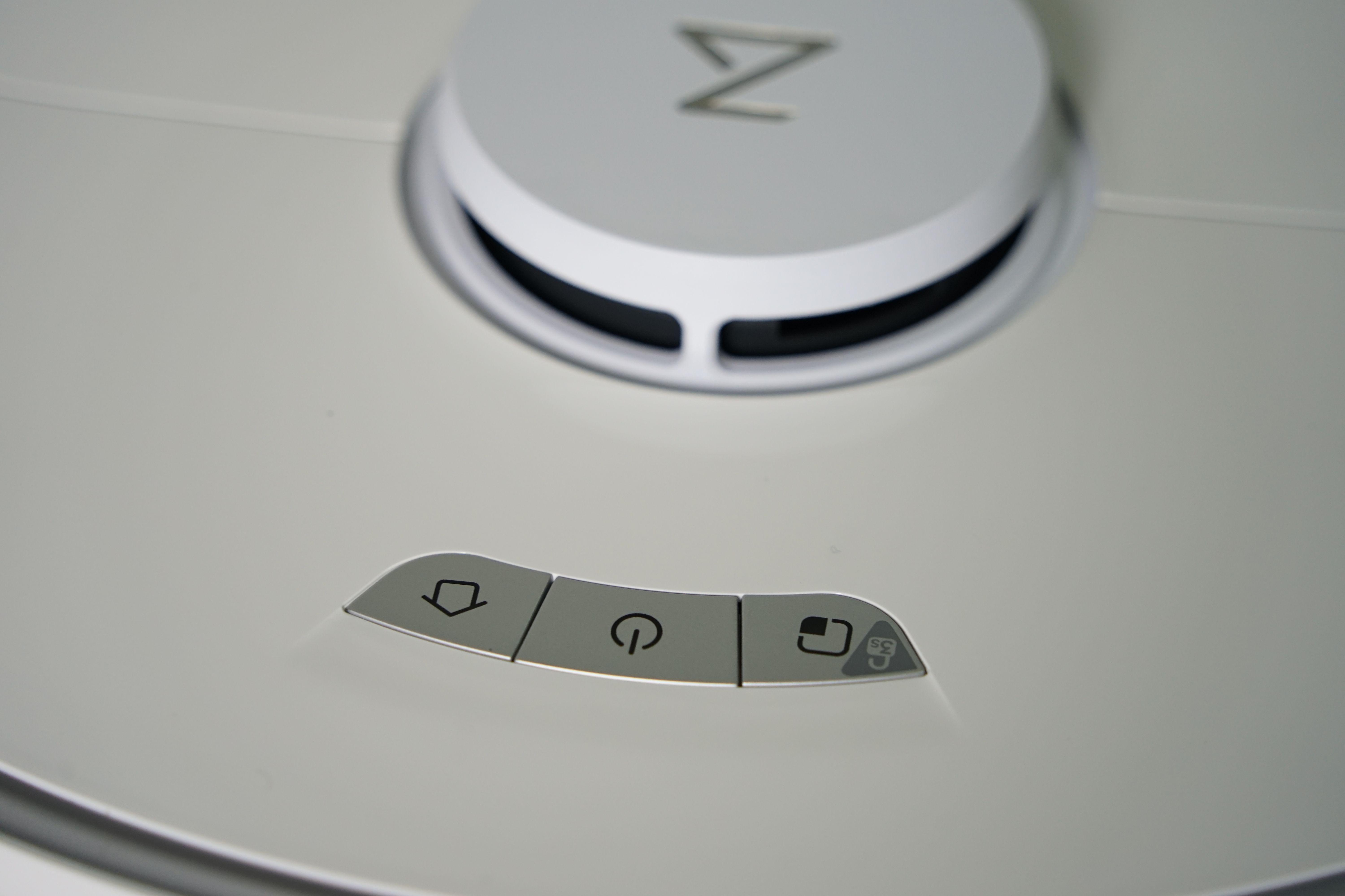 机身按键布局上,依旧是熟悉的“三大金刚”,分别是回充键、清扫 / 开关机键及局部清扫键。另外,我们可以通过长按局部清扫键开启或关闭童锁,防止家里熊孩子误触操作。