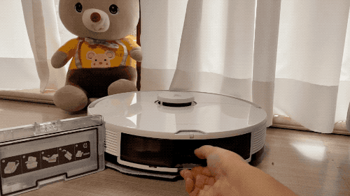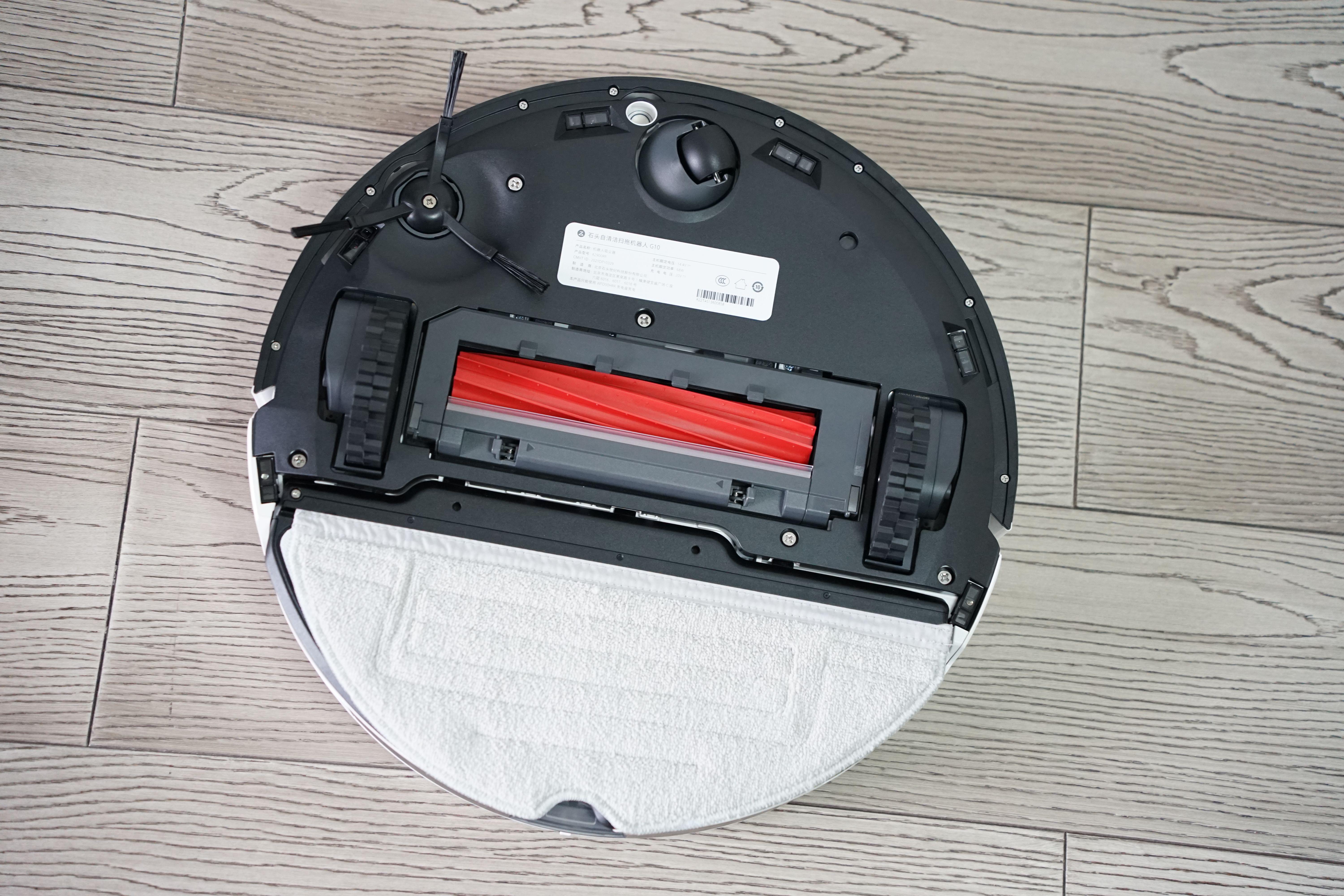 另外还有一个细节,石头G10在完成拖布清洗后,底部的拖布模组会在待机时抬起,这样可以有效对拖布进行通风,防止异味产生,还是挺人性化的。