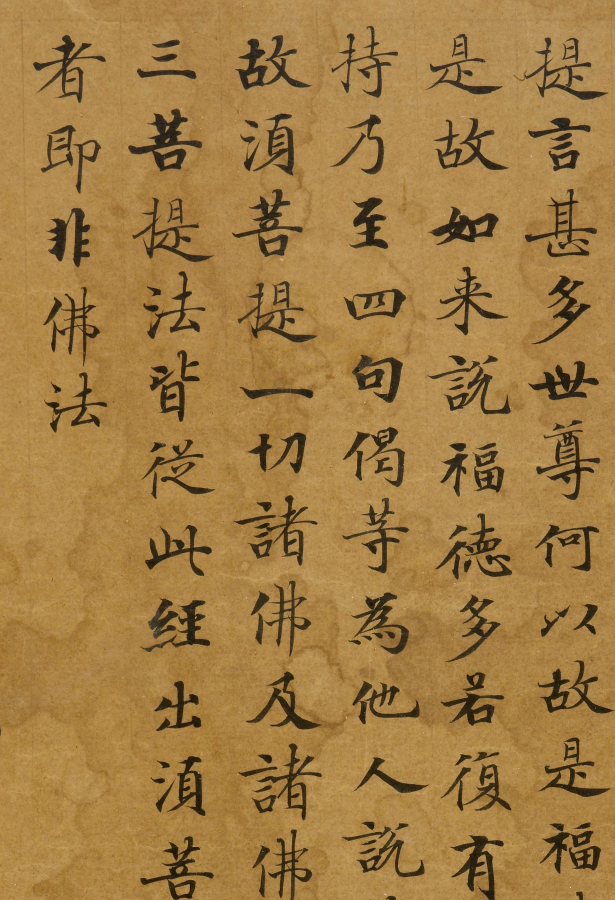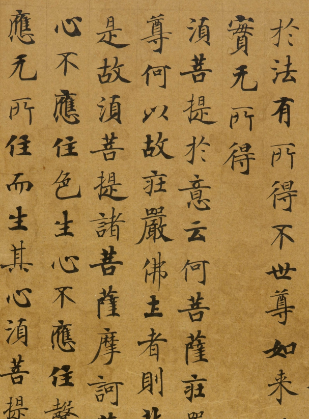 相传,这件小楷《金刚经》的诞生,是因为武则天要为逝去的母亲追福,所以发愿发愿写《金刚经》《妙法莲华经》各三千部,《金刚经》为一卷本,《妙法莲华经》为七卷本,所以全部完成之后《妙法莲华经》共二万一千卷,《金刚经》共三千卷。