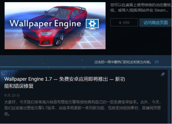 IT之家 9 月 25 日消息 据 Steam《Wallpaper Engine》社区,官方发文宣布,《Wallpaper Engine》推出了 1.7 版本,并且将在不久之后发行免费的安卓版本。