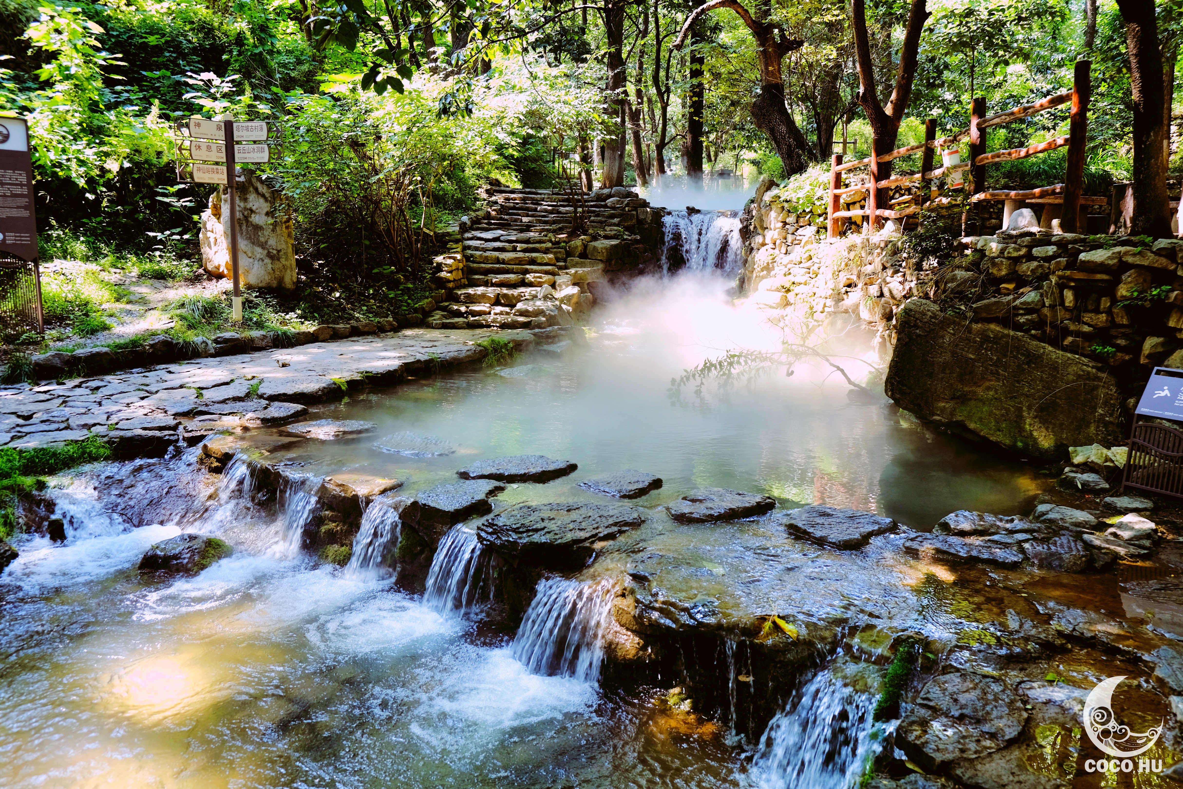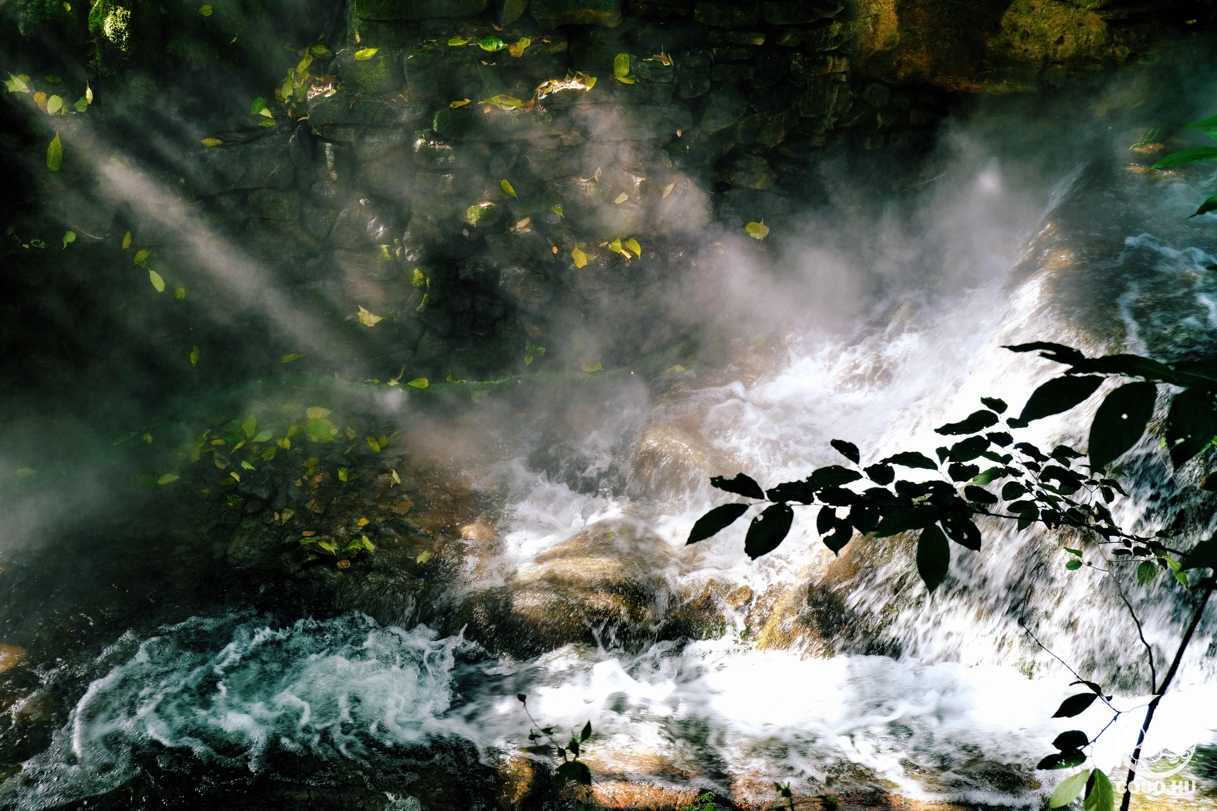 小溪中渐渐升起的水蒸气,在光影的照射下,变幻出梦幻的姿态,和天空中的云海呼应出仙居秘境的气韵,令人如痴如醉。鸭子在河流中出生入对地畅游,鸟儿在空中盘旋,为行山徒步的人们喝彩。