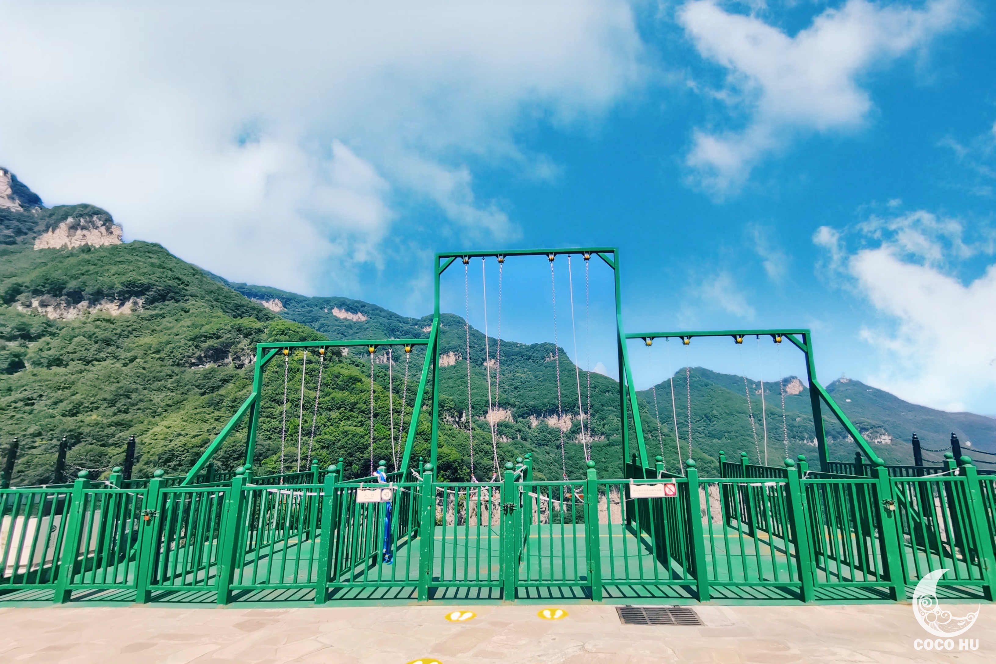 2017年,景区投入运营了蹦极、空中飞人、滑索、旱地滑雪、悬崖秋千、玻璃吊桥等项目。景区的山山水水,也在这些娱乐项目和年轻游客的欢笑呼声中,变得愈发青春,充满活力!从玉皇顶沿途而下,几乎所有游玩项目都是下山顺路途径的,所以最好的方式是步行而下。