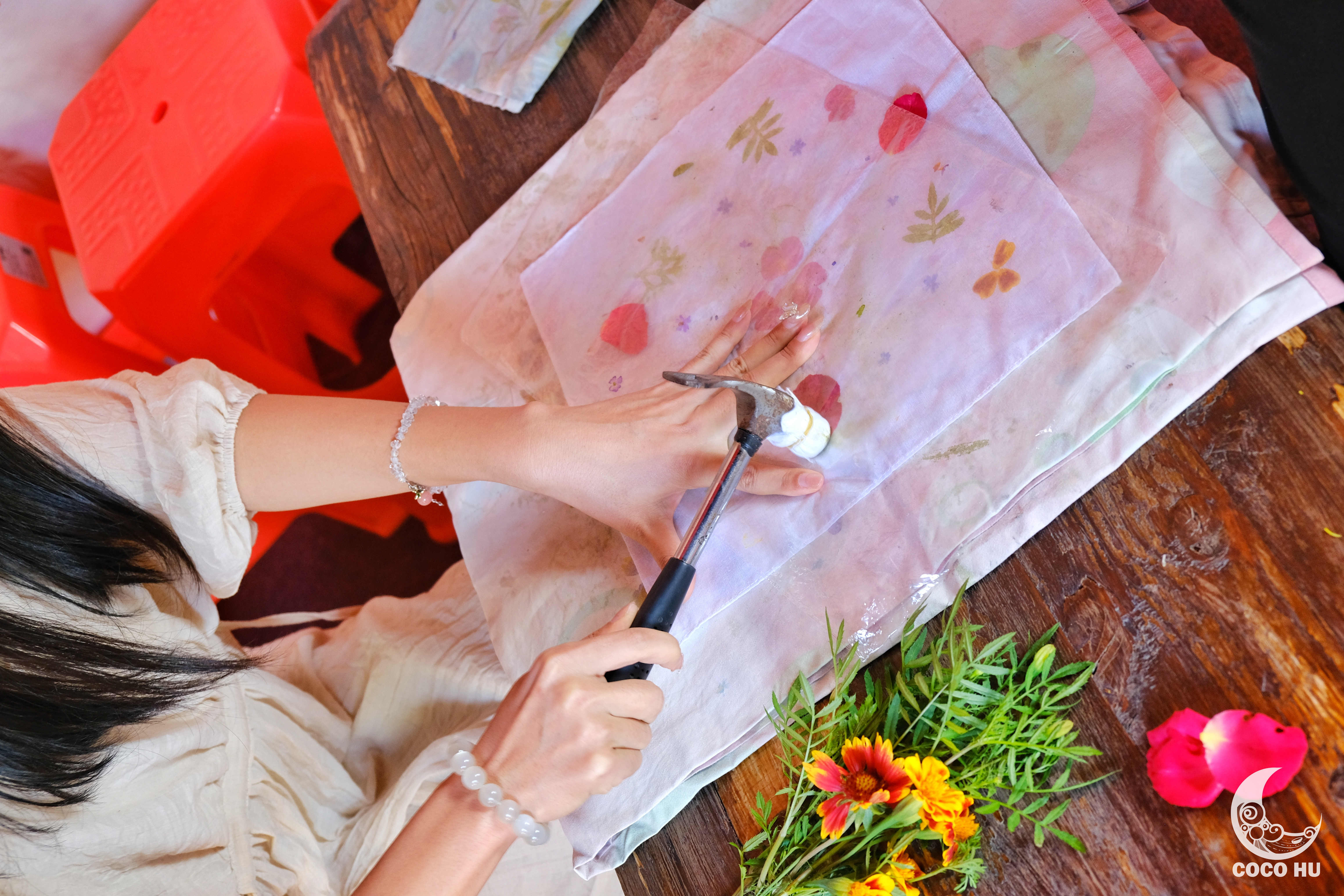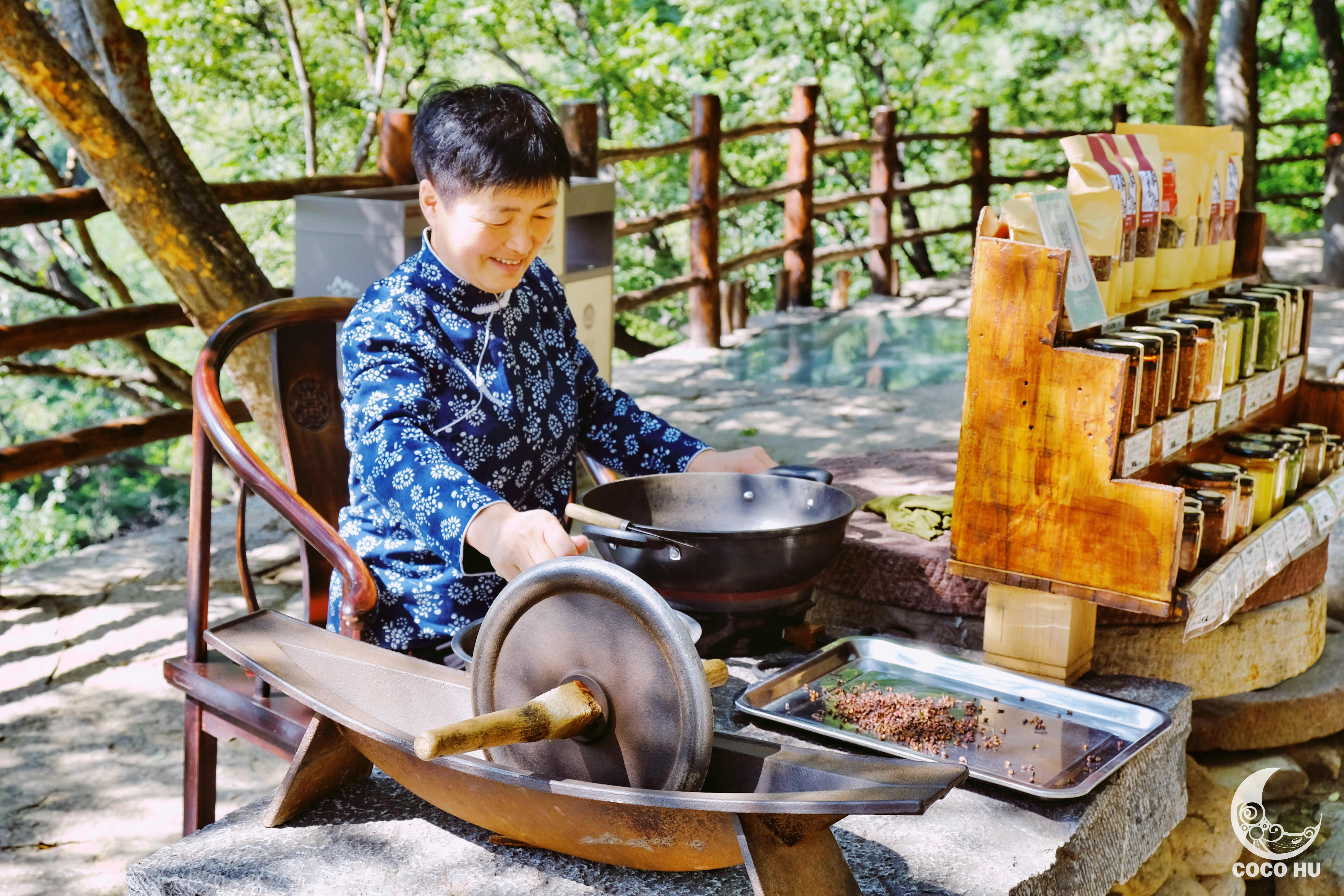 在塔尔坡古村的院落里穿行,会发现每个院落都有自己的功能所在。有动手做扎染和花染的染布院,有一饱眼福的皮影戏和打铁展示,还有闻香而至的辣椒院。大家走街串巷,忙得不亦可乎。